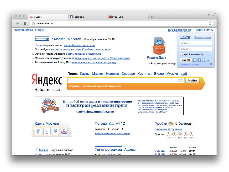 Аудитория Яндекса превышает «Первый канал»: 2012 г.