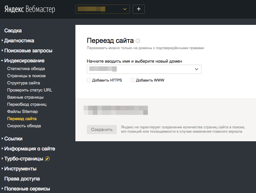 В Вебмастере перейдите на страницу Права доступа и выберите сайт.