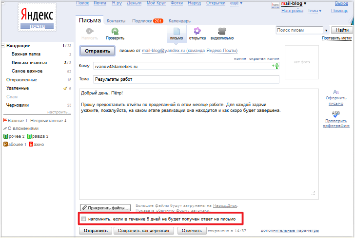 Яндекс.Почта также позволяет планировать отправку писем на год вперед.
