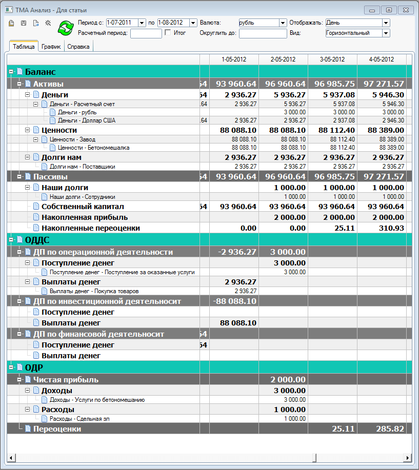 Основу отчета «Управленческий баланс» составляет двойная запись, которая позволяет быстро найти ошибки в учете.