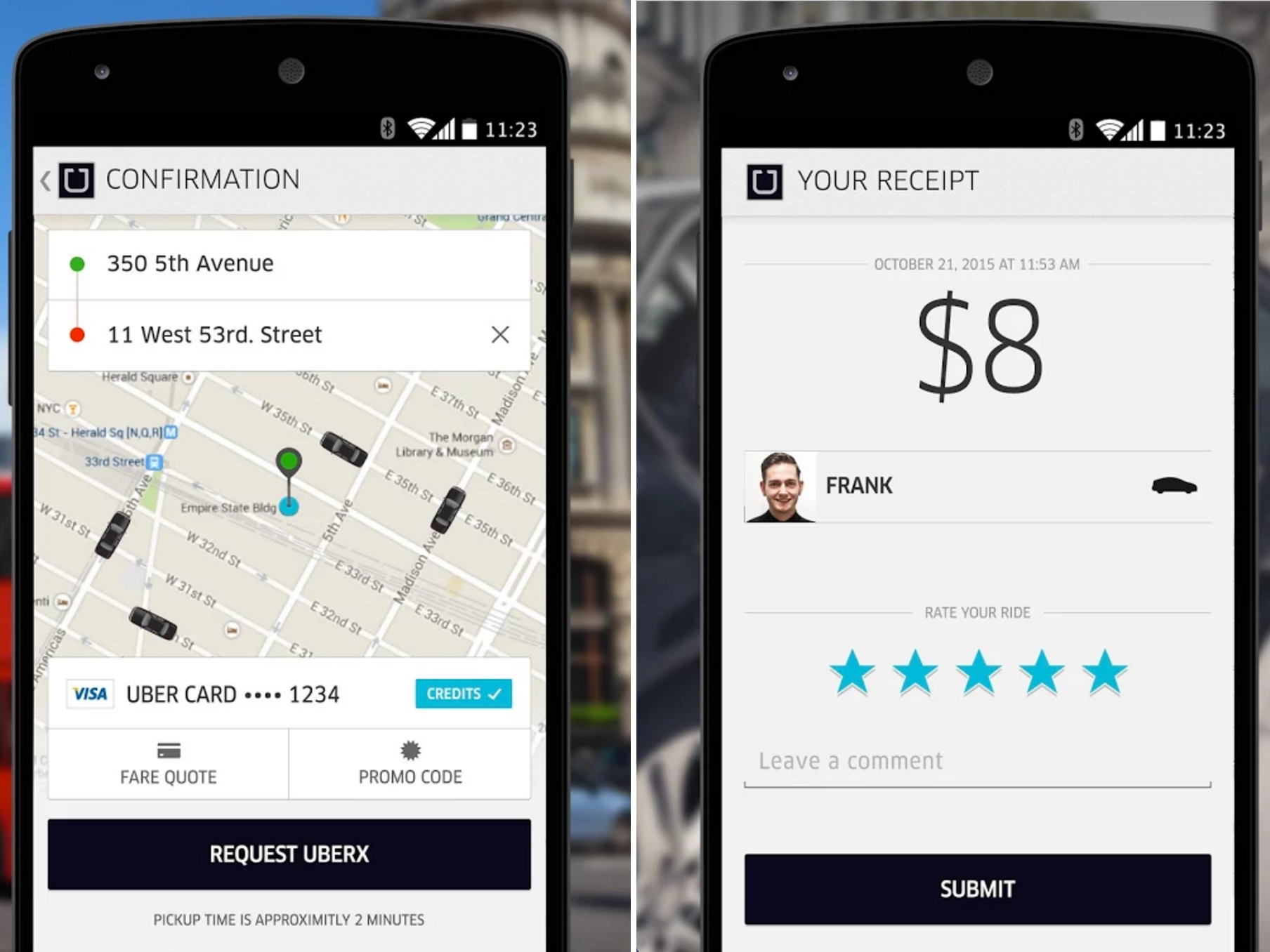 Если где-то поблизости есть водитель Uber, приложение сообщит вам о стоимости поездки , кто водитель, тип машины и сколько времени вам придется ждать прибытия машины.
