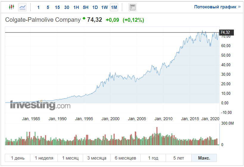 Walmart — одна из крупнейших торговых сетей в мире. Компания постоянно открывает магазины в разных странах. Среднегодовой темп её роста (CAGR) прогнозируется на уровне 6%. По подсчётам Тимура Баянова, компания платит дивиденды в течение 47 лет. Покупка акций подходит для получения дивидендов и зарабатывания на росте ценных бумаг.