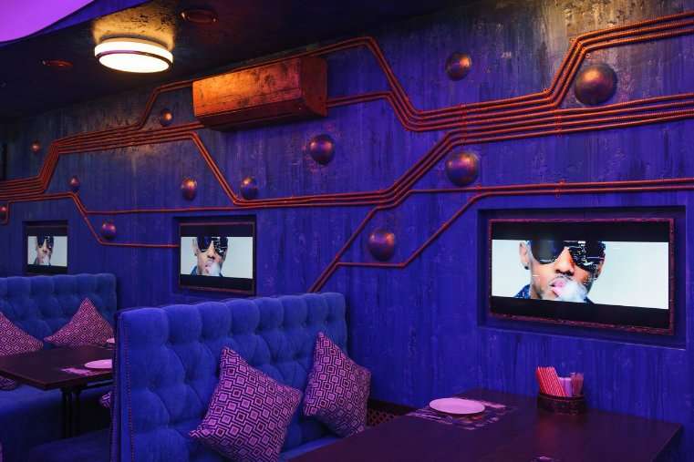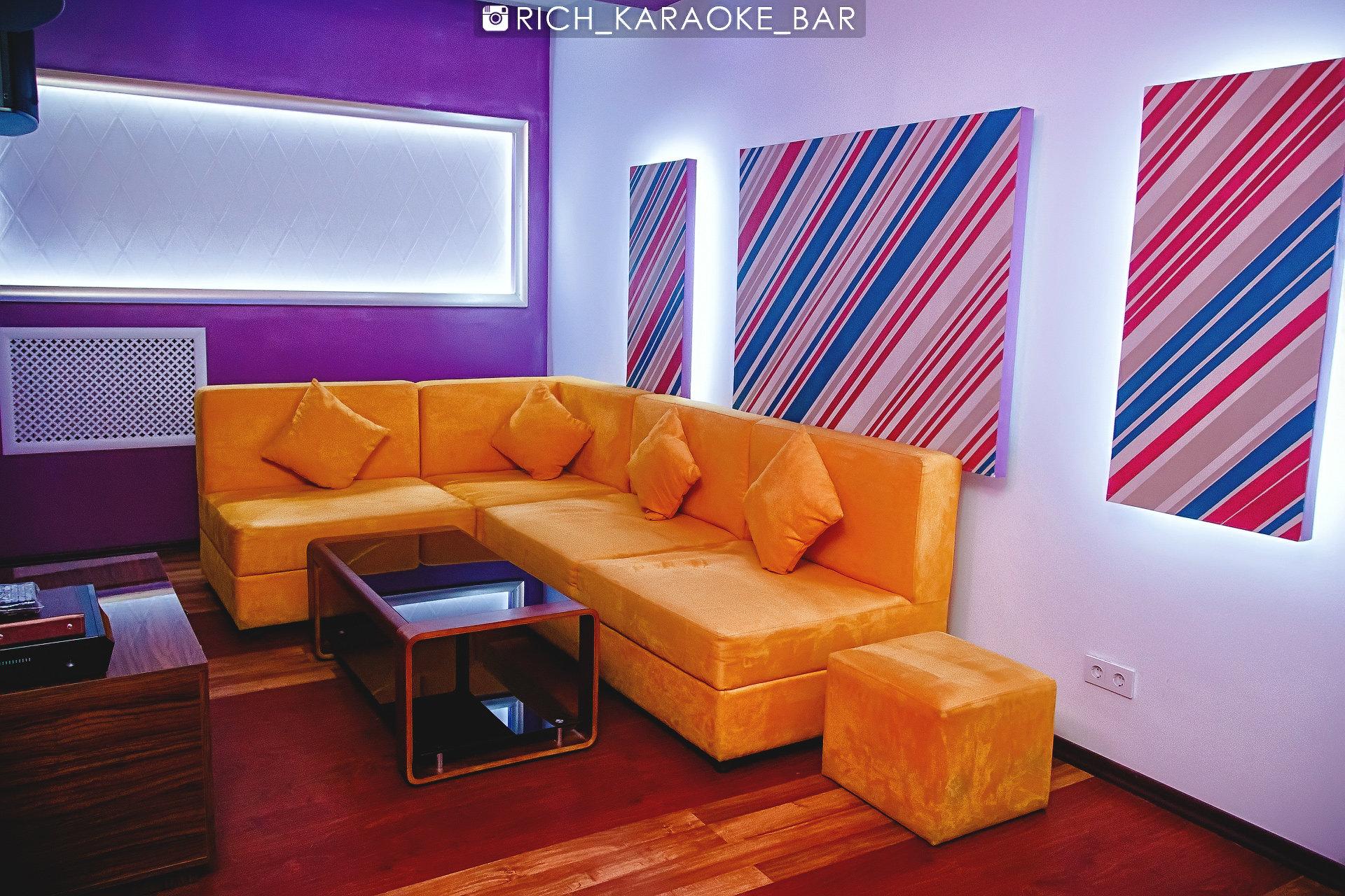 Здесь нет бэк-вокалисток и позолоченных стульев, зато есть маленькие комнаты с минималистичным интерьером и удобными кожаными диванами. В каждой из них предусмотрены бар, светомузыка, розетки, XBOX ONE и Apple TV. Ну и, конечно же, караоке. Меню небогатое (снеки, пиво, энергетики), зато можно принести с собой что угодно на свой вкус. Например, пиццу.