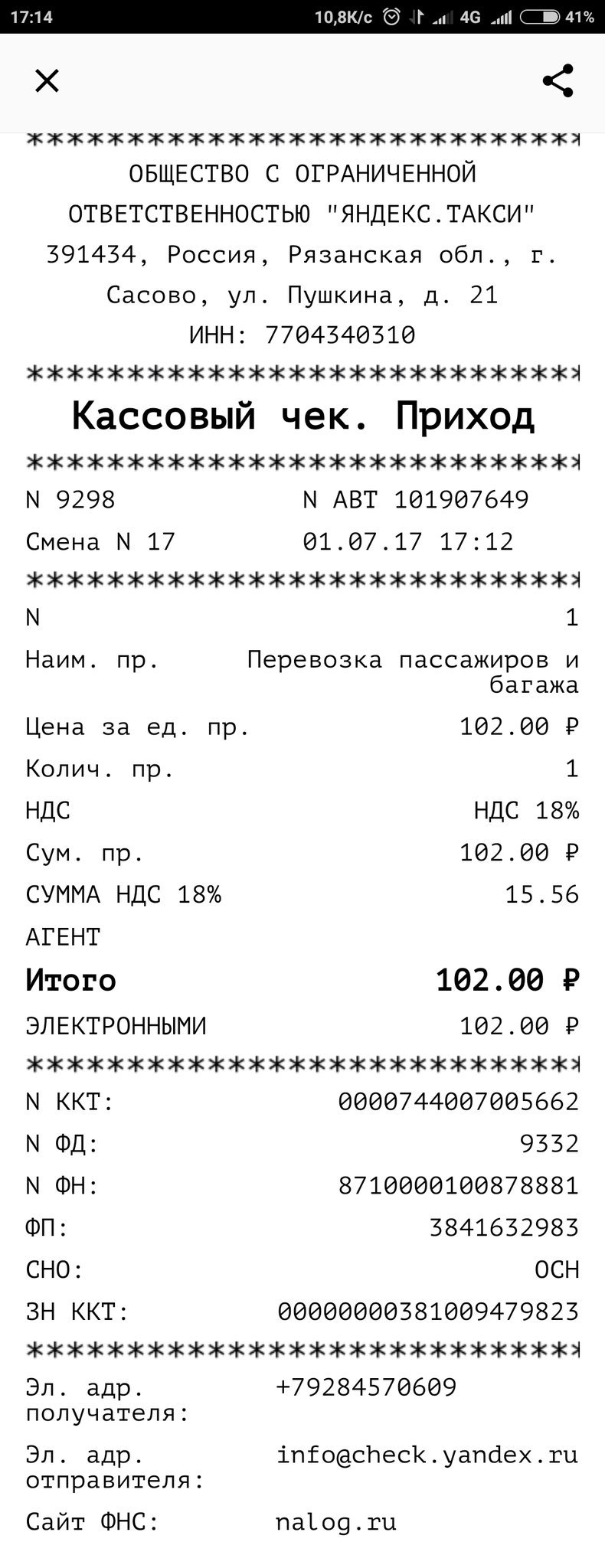 Чек после поездки в Яндекс Такси, который подтверждает факт оказания таксомоторных услуг, может быть выдан как в письменной, так и в электронной форме. Если документ выдается на бумажном носителе — его заполнение может производиться как от руки, так и с помощью печатных устройств.
