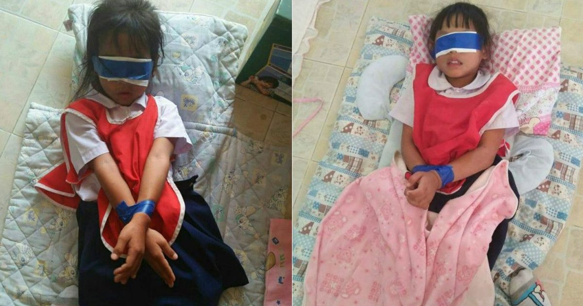 Нашумевшая в интернете фотография была сделана в детском центре «Золотой ключик», а в комментарии к ней сообщалось, что сотрудники центра применяют по отношению к детям именно такие методы «реабилитации».