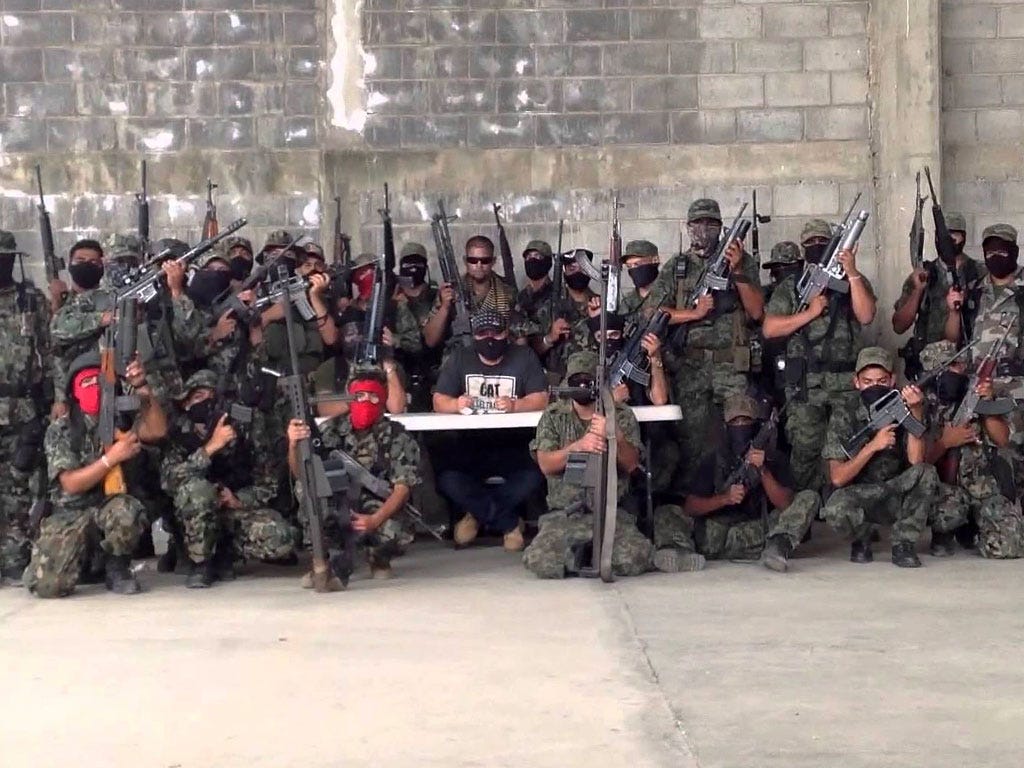 Выступающие, судя по внешнему виду, от этих головорезов недалеко ушли. При этом о своей принадлежности к наркокартелям или отрядам самообороны они не говорили, позиционируя себя скорее как независимых борцов с нарушителями закона.