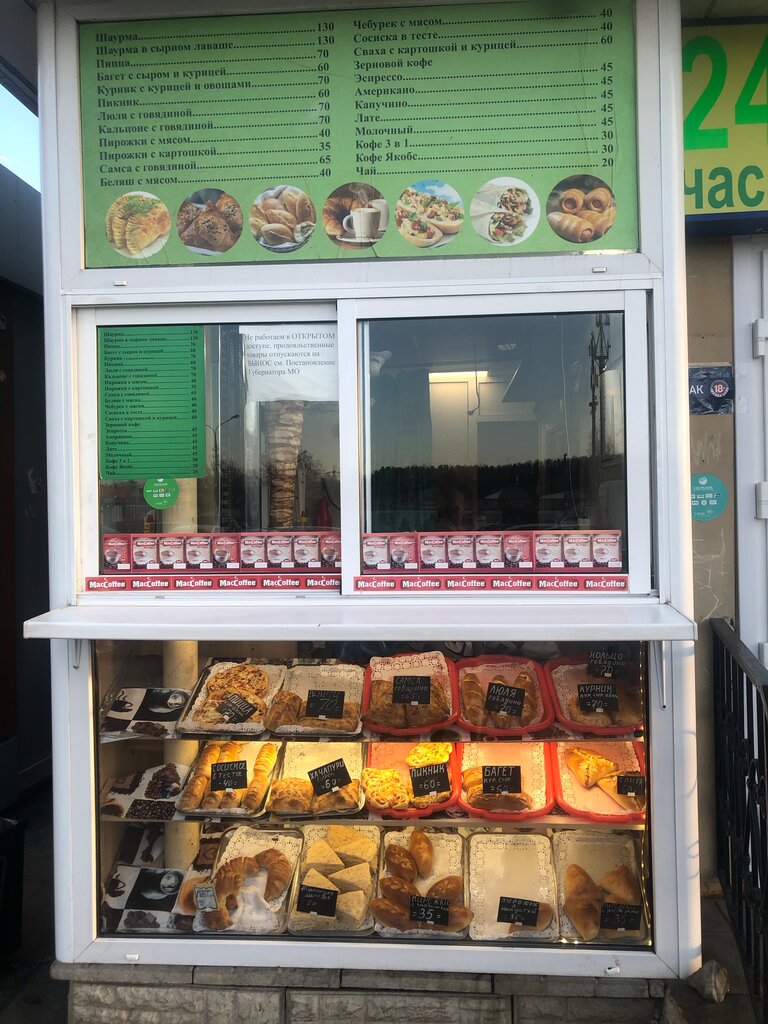 Выдают все это великолепие в опрятном ларьке-стоячке на проспекте Мира — удобнее брать с собой, но и внутри съесть тоже можно.