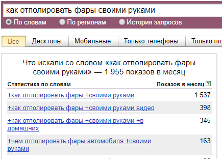 - Через wordstat.yandex.ru проверяете все запросы, которые относятся к Вам.