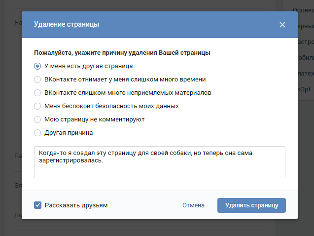 Еще один способ, узнать, кто заходил на вашу страницу – это перейти в «Настройки» и во вкладке «Общее» найти надпись «Удалить свою страницу». Выбрав причину «Мою страницу не комментируют» — вы можете увидеть пару людей, которые заходили к вам на страницу.