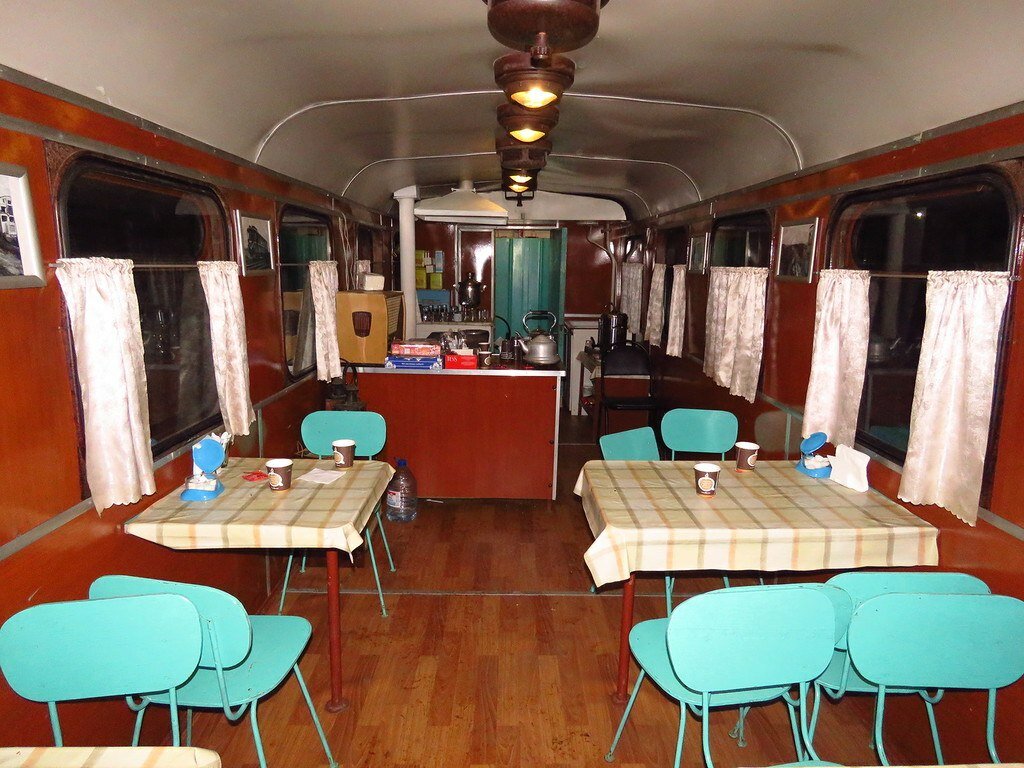 Это не вагон-ресторан, как можно было бы подумать, а вагон, который предназначался для снабжения горячей пищей рабочих бригад на торфоразработках.