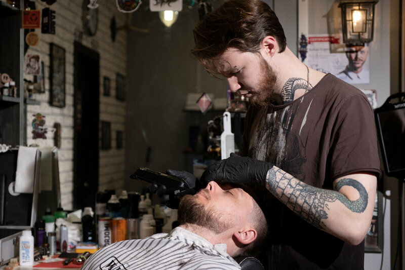Стрижка. Для волос на голове мастер может использовать машинку, ножницы и даже опасную бритву – инструментарий зависит от выбранного вами стиля. Борода и короткая стрижка на голове могут оформляться вместе машинкой. Для дальнейшего придания нужной формы щетине барберы часто применяют шейвер и опасную бритву.