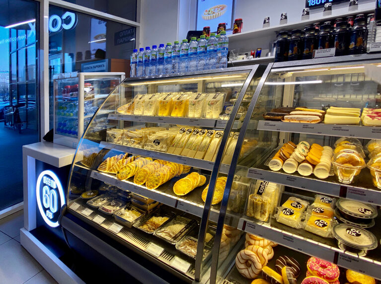 Этот магазин довольно маленький и компактный, поэтому большинство людей используют его как место, чтобы зайти и выпить кофе или легкие закуски по дороге на работу утром.