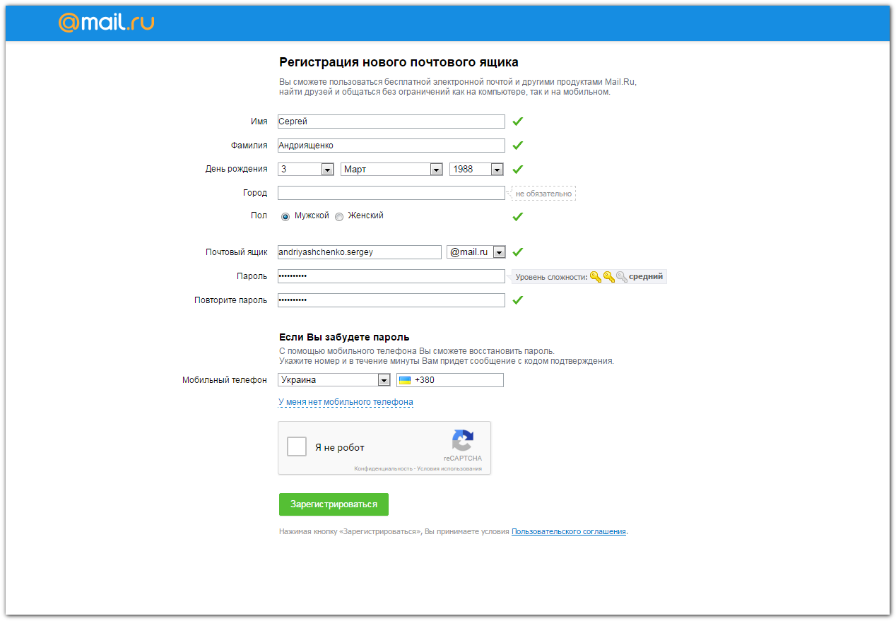Добавьте действующий номер телефона. Если вы потеряете пароль, он поможет восстановить доступ к ящику. Также через номер можно защитить аккаунт с помощью SMS-пароля. Нажимаем зарегистрироваться и почта готова.